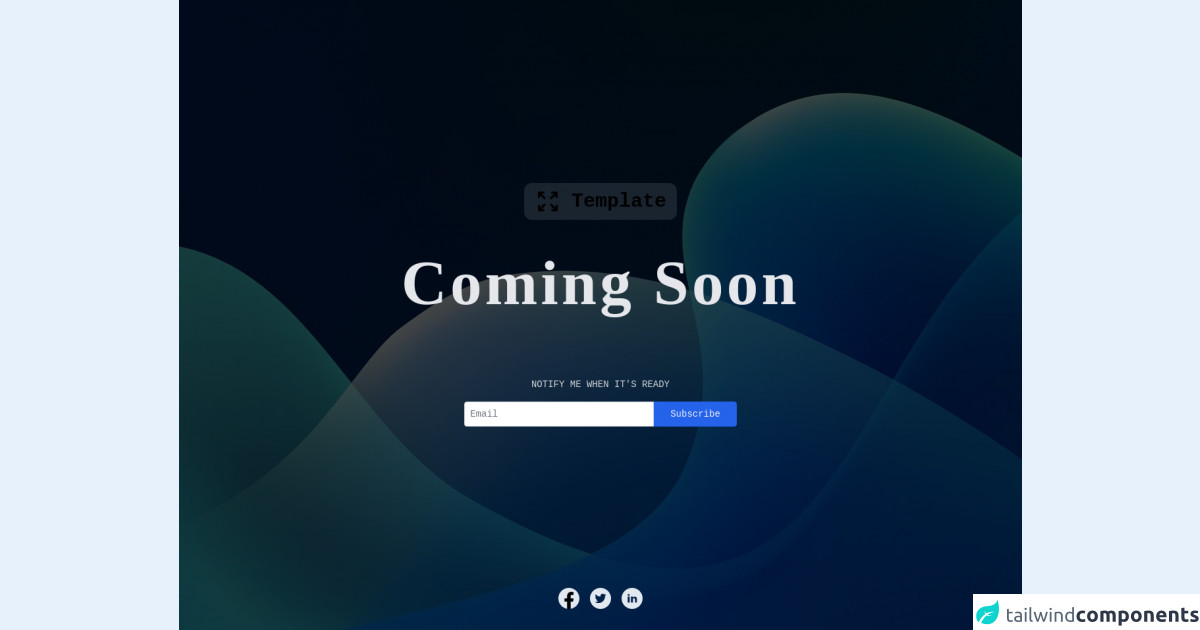 Simple full page coming soon with waitlist signup form, made using Tailwind CSS by surjithctly.