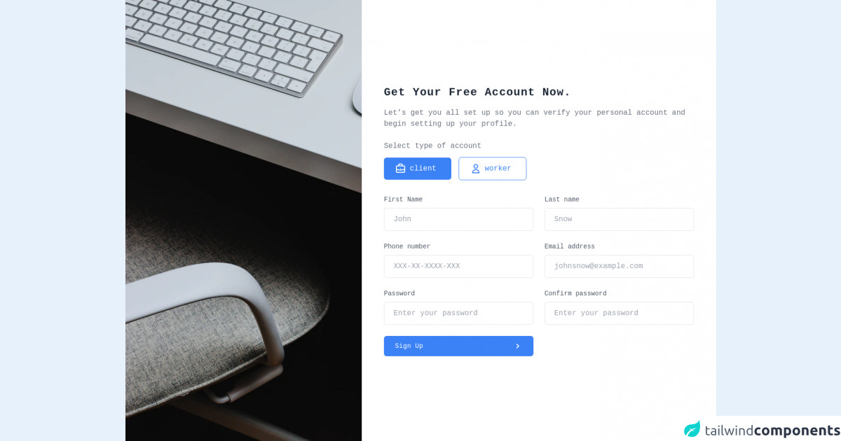 This article gathers a collection of Tailwind CSS Sign Up page components that you can use right now for your web project.