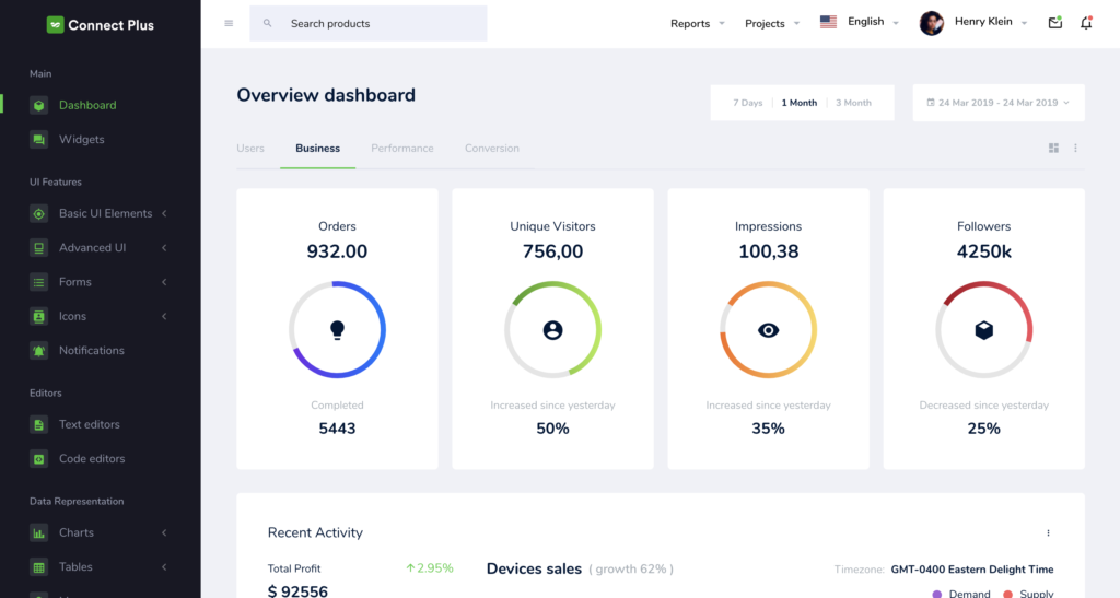 Connect Plus Vue is a feature-packed admin dashboard template for Laravel designed to look simple, unique, and beautiful. The template puts a great focus on usability and Typography to guarantee an enhanced user experience across different devices and browsers. It also features a fine collection of both basic and advanced UI elements ranging forms, icons, widgets, maps, tables, charts, and more.