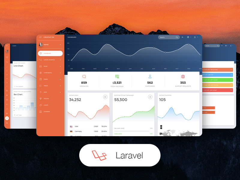 Now UI Dashboard PRO Laravel will help you create complex apps with a simple and clean look, a perfect fit for today’s flat design. The dashboard is packed with a huge number of handcrafted UI components, charts, maps, tables and more.