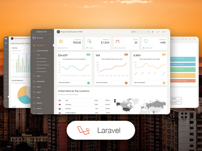 Paper Dashboard PRO Laravel is based on the extended version of Paper Dashboard. We always rely on developers` feedback to improve user experience, so in Paper Dashboard PRO Laravel we added highly requested components and additional example pages.